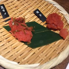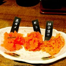 熱中屋のお通し! 左から 昆布明太子、超辛明太子、柚子漬け明太子 1品のおすすめにも載ってるだけあってとても美味しい✨ 後でお茶漬けを頼んで食べるのも最高