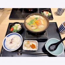 名古屋は、地下鉄以外運休、デパートや商業施設も臨時休業で閑散…昼食難民になるかと思いましたが、ミッドランドスクエアのいくつかの店舗は営業✨地下鉄で通勤出来た人たちで営業してるとのこと。ありがたや〜🙏 ズワイ蟹と小柱の卵とじ湯葉餡かけ御膳。 生姜が効いていて、身体ポカポカ。元気になりました🥰