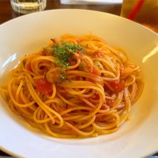 本日のサラメシ☆ 季節限定メニュー、今月はボンゴレロッソ🍅ランチセットはミニサラダ、ドリンク付で1300円。パスタはちょっとピリ辛でおいしい😋出来たて熱々で幸せ❤️