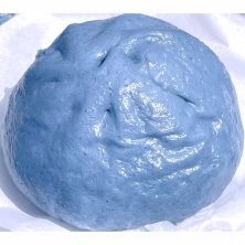岡山県倉敷市 倉敷美観地区のデニムストリート内に有るカフェの店で購入したデニムまん。 この店の名物メニューの1つで、天然のクチナシの花から抽出した色素で着色された皮の中に黒豚を入れた豚まん。 味は美味かったが、普通の豚まんと変わらない。