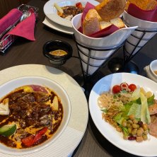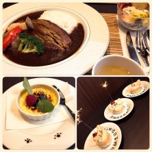 東新宿にできた愛犬複合施設、愛犬ヴィレッジに初めて行ってきました ٩( 'ω' )و レストラン、屋上&屋内ドッグラン、トリミング&ホテル、ドッググッズ売り場がバリ風の綺麗な建物に全部入っていました! レストランで「貫禄ビーフの幸せハヤシライスセット」をオーダー。ソースに隠れてるお肉、本当に貫禄たっぷりです♡本格的なワンコブッフェもセットで付いていて、ワンコ皆大喜び ヽ(´∀`*)ノ お友達のワンコもうちの子も皆8月生まれだったのですが、お店からサプライズでワンコケーキを頂いちゃいました。