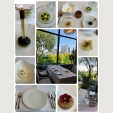私のお誕生日会で行きました〜 ロケーションがまず素敵✨ 一面ガラス張りのお部屋からの眺めもいいです💖 スモークサーモンのタルタル グリーンピース 海藻のサバイヨン 間に小皿でかわいいお料理が出てきます😍