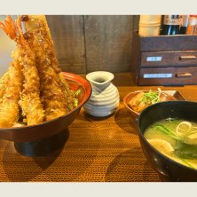 ほんとは握ってくれるお寿司食べたくて行ったらめっちゃ値上げしてたから断念。いや、よく考えたら目の前で握ってくれるのに前の価格が安すぎたんよね。で、近くの天丼屋にふらり。 海老天2本、かぼちゃ、なすび、とり天、ちくわ天が入って小鉢とお味噌汁で千円!めちゃくちゃお得でした🉐