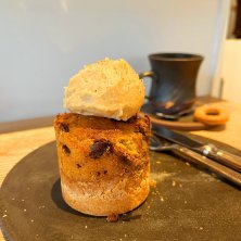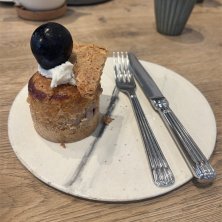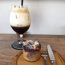 洋服屋さんに併設されているカフェ。 13時から提供される季節のタルトマフィンが食べたくて伺いました。 セルクルに入って焼かれたマフィンは そのまま保温されたベストな状態で提供。 水・金曜日はマフィンの提供なし。 いつも早めに売り切れてしまいます。 ⚫︎ナガノパープルのマフィン ¥350 ⚫︎カフェ オ レ ハニー ¥650 甜菜糖を使用したプレーンな生地に まわりには甜菜糖ときび糖を使った粉砂糖。 中には大粒のナガノパープルがごろりと。 火を通してさらに ぶどうの甘みが増しておいしい。