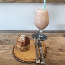 半年ぶりのmy little happinessさん。 ほかほかのマフィンも好きですが、たっぷりいただけるドリンクも嬉しい。 ⚫︎いちごのタルトマフィン ¥330 ⚫︎いちごとバナナとリンゴのスムージー ¥650 底はタルト生地の ほかほかマフィン。 中には火を通すことで甘みが増す おいしいいちごが丸ごと入ってます。