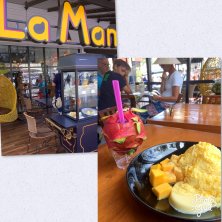 涼しいって言っても、やっぱりタイよね。 少し歩いて 休憩はやっぱりマンゴー! ドラゴンフルーツのジュースと一緒に。