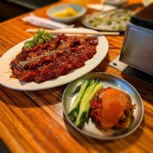 正月の食材を買いに天満市場に 大阪・天満の一頭買い人気店で焼肉ランチ タンとネギカルビの定食を相方と半分っ子🤗 とてもタレが美味しくってお気に入りなのですが 前回より量が減っていますね。 実質値上げ・・・・ʕ⁎̯͡⁎ʔ༄
