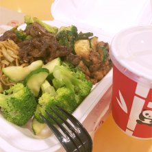 こんにちは♬ 土曜日のコオリナはラグーンにロコたちが集まりにぎやかです✨ 今朝もジョギングの距離を少し伸ばして600mに♬ この調子でいければよいのですが、わたしの弱点は右膝なので痛みが出ないか恐る恐る(^^;; 投稿は昨日の夕ごはん♬ 疲れてお料理する気になれなかったので、近くのモールでテイクアウトの中華です(^_−)−☆ 日本にも進出したパンダエクスプレス。 アメリカンチャイニーズの甘めの味付け、久しぶりだわ。 インゲンとチキンの炒め物と北京風ビーフに炒飯。 これで$8.56 ✨