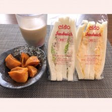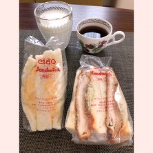 苺サンド。 開店時間に行って出来たてを買ったので、開けたらふんわりとパンの香りが♪ クリームは植物性かな…
