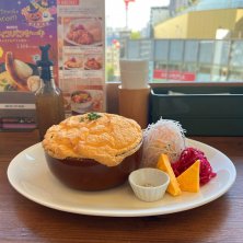 ロキソプロフェンを貰いに病院へ。 腰痛緩和に効果があるので.... 墨田区民から江東区民になったが、江東区の端に住んでいるのでスーパーや病院は未だに墨田区を使っている。 両区のハーフみたいな生活😅 薬を1ヶ月分処方してもらったあとランチ。 フードコートより空いていてお気に入りのお店。 「メレンゲ仕立てのスフレオムドリア」 期間限定に乗せられてこれを。 スフレに少し塩を付けて下の熱々のドリアと。 ベーコンも入ってます。 ハロウィンメニューを眺めながら.... なかなか美味しかったです😋
