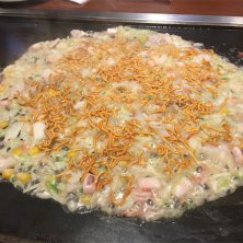 もんじゃ焼き 税抜660円 初めて食べました。生まれも育ちも関西なもので… 想像してたよりは美味しかったかな。 ふうわり焼き ハーフ 税抜 390円 巨大なたこ焼きの生地を焼いたみたいな感じ。 出汁につけて食べると美味しい!