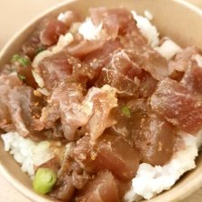 アラモアナショッピングセンターにあるスーパーマーケット購入した「ポケ丼」。 種類が豊富で、味見をさせてもらいスパイシーなマヨ和えにしました。 ご飯の上に「Furikake」を乗っけるのがハワイ流です。