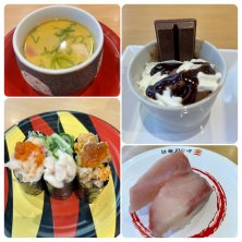 アプリ限定のワンコイン軍艦盛り。すごいお得感ある!北海道フェアかな、どさんこてんこ盛りも食べ応えあった😊今日は、ゆっくりできたから練乳パフェとプリンにコーヒー☕️すっかりくつろいでしまった。楽しかった♡