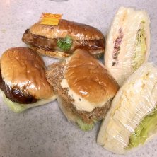 そういえば…やってるかな?あのまま閉店はないよね?と1か月ぶりにミッキーへ。 あ!やってる!(いつからかは不明)ん?全体的にお値段アップ?した?まぁ今までが安過ぎたよね。 トレイをレジへ。 先月、主人が亡くなったと張り紙があった。 そっか…それで休んでたのね😔 そして値段が変わったってことは、頑固な親父さんが「値上げはしない!」とか言ってたのかなぁなんて勝手な想像をしてみたり(笑) ラップに包まれたハムエッグとたまごサンド。 わーどっちもたまごだし🤣 それとピスタチオクリームパン。