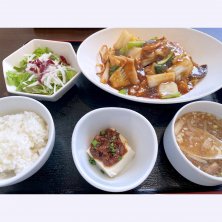 今日は安定のあんにんでランチ🍽️ いつものあんかけ焼きそばではなく、日替りランチに挑戦😊 豚肉とイカのトーチー炒めとか…トーチーって何なん? とーちゃんがナベを振るうと… とーちゃん炒め なんか似てる。