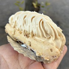 おやつムラシャン〜 ・ムラングシャンティイ オーダーしてからシャンティイを絞ってくれるお店は珍しい! (シュークリームはよくあるけど、ムラシャンでははじめて) 賞味期限30分て買いてあったので、近くの公園でムシャー ムラングがサクしゅわでシャンティイがミルキーで口溶けが良くておぉいーしぃー! 亀戸の焼菓子屋パルタジェ