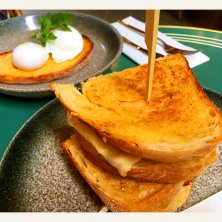 ロイヤルアーケード付近の路地裏をちょちょいと行くとカフェストリートが Cafe Segovia ビッグサンド的なやつを2人でシェア お行儀悪いけど、ほんとなら大きな口を開けてパクって食べたかったね 後で知ったけど、スパニッシュカフェだったわ