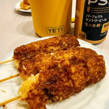 夕ご飯 佐野のイモフライ パーフェクトサントリービール🍺 ゴルフ帰りに佐野名物のイモフライをテイクアウト。お店の外でまずは揚げたてを一本食べて大満足〜 家で温めてビールのあてに🍺うーん、最高! 私は子供の頃から食べて慣れ親しんでるイモフライ。実は全国的にはマイナーだって知ってびっくり‼️美味しいのになぁ😁 早朝からのゴルフで12時には終わったにも関わらず熱中症ぎみ。 空調服も着てたのに〜 アイスノンして早く寝よ😂