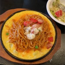 焼きイタリアン。ナポリタンじゃないのは、ケチャップ味ではなく、トマトソースだからかも。下敷きの玉子は見事な半熟。あっさり、ツルツル。見た目はナポリタンなのに、違う味。でも、これなら毎日でも大丈夫かも