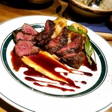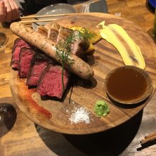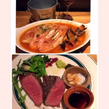「炭火とワイン京都駅前店」にて 『プライムハラミ 厚切りステーキ』1280円 注文したメニューと時間を照らし合わせて良きタイミングで提供してくれ、どんどんお腹が幸せになってゆくお店((o(^∇^)o)) 時間無制限でワイン飲み放題なのがオイシすぎる♪ 昨日は16時から営業しててたっぷり飲み楽しめた〜