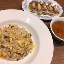 【チャーハン&ドラゴン餃子】 なんか無性にパラパラのチャーハンが食べたくなってん〜♪ ついでに餃子もね!(๑˃̵ᴗ˂̵) #チャーハン #炒飯 #パラパラチャーハン #餃子 #ドラゴン餃子 #黄金コンビ #名古屋出張 #桑名 #ドラゴンキッチン #ついで