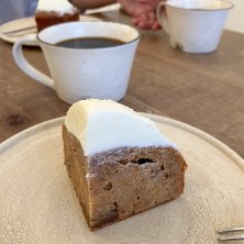 スパイスとイチジクのブラウニー (苺と栗のアイス添え) 珈琲 編みものの会