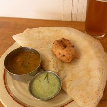 ランチドーサセット、塩の山ゴーぜ@アンドビール(山梨)🇮🇳🍺 最近西荻窪で間借り営業してるドーサのお店のポップアップイベントに伺いました✋ 店主さんがインドでホームステイしてる時に食べていたというドーサは毎日頂ける飽きのこない美味しさです👍 ポテトマサラを包んだドーサとワダをサンバルやチャトニにヒタヒタに浸して頂くのがおすすめとのことです✨