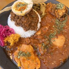 2種がけカレー定食に合鴨アチャールとソフトシェルクラブアチャール追加🍛🦆🦀 8周年イベントに伺いました イベント限定の8種がけは売り切れでしたが、甲州やまごみそを使ったキーマと豆乳を使ったケララチキンはどちらもしっかりスパイシーでじんわり汗をかく辛さ、スペシャルなアチャールも頂けて大満足です✨