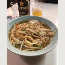 【ピリ辛味噌ラーメン】 単独出張は、やっぱりラーメンが食べたくなる。 今日の宿泊先近辺をネットで探すも、画面の地図に出てくるラーメン専門店はちょっと遠い。 とりあえずコンビニが近くにあるので散歩がてら町並み見物してたら、中華料理の看板があるじゃないですか。 ガラス越しに覗いてみればテーブルは満席状態。 決めました今日はここ。 普通に美味しかったです。