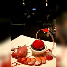 ホテルディナー連載第6回 ようやくデザート ◎メレンゲの上にホワイトチョコレートのムース、ストロベリーソース掛け、薔薇のエキスを含んだストロベリーシャーベットと共に えー、これ、メニューには『本日のデザート』ってなっちゃってるんで、私の記憶でメニューにしてみました! アバウトなのお許し下さい 出てくると、パッと目が覚めるような素敵な一皿ですね~! 薔薇のエキスが、このデザートは印象的でした シャーベットを口に入れると仄かに薔薇の薫りがして、華やかなお味です 次回は別のホテルディナー!