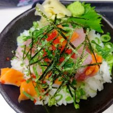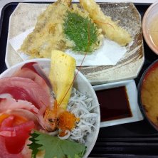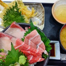 ・仲買の海鮮丼と天麩羅セット イオンのフードコートでこんな豪華な定食👍😆 海鮮丼は8、9種類 天麩羅は4種類で1050円はお値打ちだと🎵 この前来たとき、自粛明けすぐだったので、20時でも食べれなくて😭 今日は買い物前に🐟💨💨