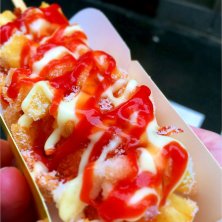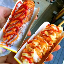マイペースに投稿、こばけるです\( ¨̮ )/ 今月、初めて東京に行って来ました〜!!! まだ若干冬感あって冷たかった❄️ 新大久保で食べたチーズホッドグ☀️ 周りにポテトが付いたものを注文。 揚げたてサクサクでポテトはふわっとしてるし、チーズがとろ〜って伸びるし濃厚だし… とにかく美味しかった🍴 絶対1人1個食べれたね〜って言いつつ、友達とシェアだった笑 次来たら丸々1個食べてやるんだ(*´꒳`*)(笑)
