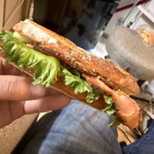 菜の花とチキンのタルティーヌ バゲットサンド 本日のランチ。 菜の花美味しい😋
