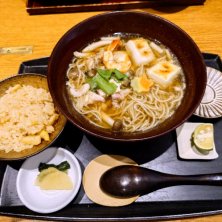 ちょっとお昼から贅沢してしまった😆 松茸とすだちの地鶏なんばんと炊き込みご飯🍚 そばはもちろん、この炊き込みご飯が絶品だった✨