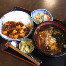 お昼ごはん(*´∇`*) 麻婆丼+ラーメンセット いただく(๑˃̵ᴗ˂̵)