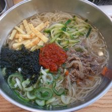 こんばんは(・∀・)ノ まだソウルご飯です。 東大門市場に買い物に行った時に、適当に入った粉食屋さんの牛肉グクス。 所謂にゅうめんです。 あっさり食べられると思ったら、凄いボリュームで、食べても食べても減らない💦 ここのお店は全体的にボリューミーでした。 キムチやパンチャンは自分で取るスタイルも粉食屋さんに良くあるスタイル。 観光客の人は分からない事もあると思うけど、周りのお客さんをよくウォッチしてみたらOK!