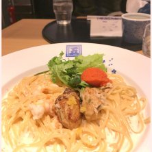 やっと五右衛門できた。。 広島県産牡蠣と帆立と冬野菜のトマトクリームスープパスタ