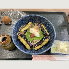 なす蕎麦〜 お値段1080円とちょっとお高めだけど、 めちゃ美味しい😍 大根おろしと大葉と梅で更に美味〜 ただ、私にとっては少ないので、 ペロリでした〜