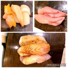 金目鯛、活ホッキ、中トロ、岩海苔、帆立、甘エビ、スミイカ、小肌