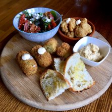 シェフのタパスプレート ❅ ルッコラとフェタチーズのサラダ ❅ たらのコロッケ ❅タイ風 海老コロッケ ❅イカフライ🦑 ❅フムス