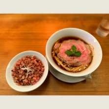 田中の中華そば。卵付き。花金の夜8時。一人で30分くらい並んだ。チャーシュー?これはローストビーフだと思う。次来た時はこのお肉がたくさん乗った丼を食べる!!!麺は意外と太くて啜るよりは噛む感じ。