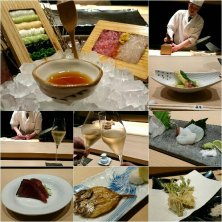 ❇happy birthday1/3❇ 今宵は旦那っちのお誕生日 六本木の寿司割烹でお祝い(*^^*) まず目に飛び込む白木の寿司カウンター。10名程の特別な場所が美しい。板さんが私たちのためだけにお料理をサービスしてくださいます。 シャンパンで乾杯❇ 間近に見る丁寧な職人技に魅了💕 アスパラガスのお浸し。目の前で鰹節を削るいい香り✨ 鰹たたき、水蛸とマコガレイ。のどくろ一夜干し。牡蠣と山菜の天婦羅 。甘海老とトロのタルタル 六種の薬味添え。美味しい❤ メインのお鮨へ続きます…