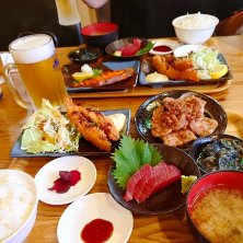 今日は保養所の巡回のバイトの後、仲良しママとランチに😊 豚肉しょうが焼きと海老フライの定食を🥰 マグロの刺身に小鉢が付いて850円💕 お腹いっぱいになり、ご飯は残しちゃいました😅