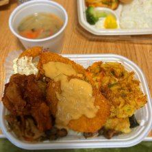 カスタマイズ弁当 のりかき揚げ弁当 +からあげ、コロッケ、シュリンプ みそ汁