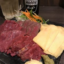 <馬刺し> ミル友のすーさん(@sue_ 様)、かなさん(@kanananko 様)も訪問している馬肉料理の居酒屋さんです。 とにかく安いです。 (馬ござる/十条)
