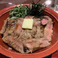 ランチはステーキのハンバーグの相盛り かなりのボリュームと味の秀逸さに脱帽