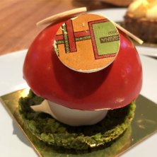 @Messina 昨日のデザート① Dr. Evil’s mini magic mushroom 🍄 キャラメル入りダークチョコ、ホワイトチョコのジェラートとピーナッツバタークッキー