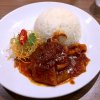 世界中のストリートフードが勢揃い٩(ˊᗜˋ*)و✧*。 でも、あまりの混み具合に 思うように動けない どこもかなり並んでるので、スパイスの香りでこちらに スリランカ🇱🇰料理の Lamprais 美味しい (๑´ڡ`๑) 途中でライオンダンスも🦁 明日は旧正月の大晦日