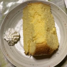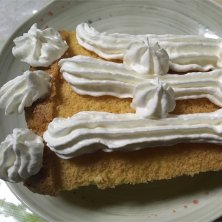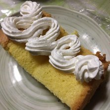 おやつ シフォンケーキを生クリームたっぷりにやってみた。