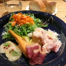 20数年来のお付き合いの友人とランチ♪ 1人は3年ぶりです😃 皆さん知識人なので、ワールドワイドなワードが飛び交い物凄く脳トレになりました🤣 ✴︎岩見沢の小玉ねぎ前菜 ✴︎広島の柿のフリット生ハム添え ✴︎フルーツトマトのアマレット ✴︎アスパラ羊のラグー ✴︎余市のプルーンのシャーベット 小玉ねぎの中は甘い香りで初めての味💕 柿のフリットに生ハムがぴったり😆 アスパラだけを食べて育った羊も濃厚です! デパートのイタリア展🇮🇹に移動しましたが、予想外に空いていて驚きました😳